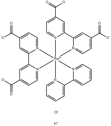 英文名稱:Ruthenate(2-), (2,2′-bipyridine-κN1,κN1′)bis[[2,2′-bipyridine]-4,4′-dicarboxylato(2-)-κN1,κN1′]-, hydrogen chloride (1:4:2), (OC-6-21)-